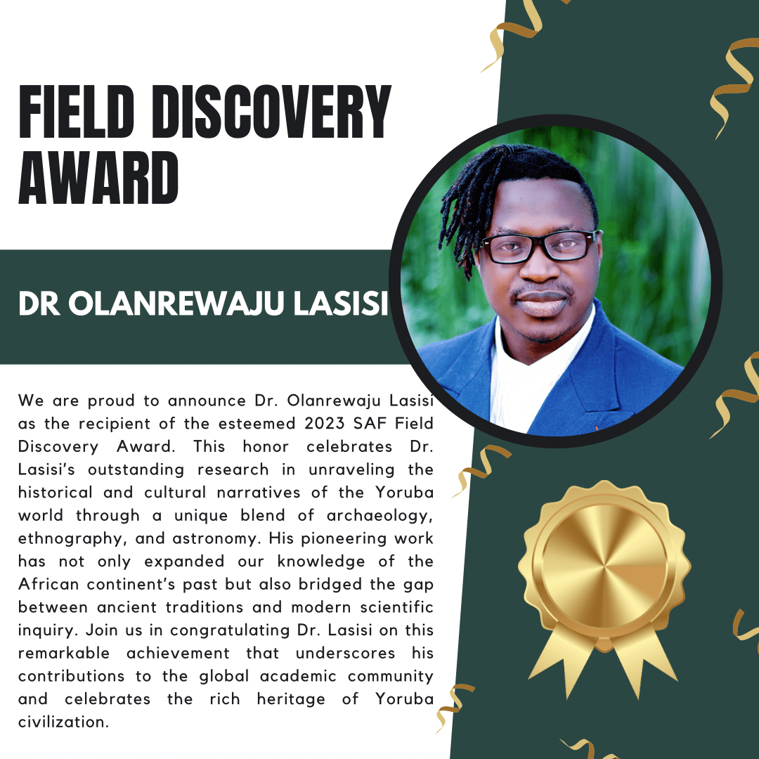 Dr. Olanrewaju Lasisi of the University of Virginia has won the 2023 SAF Field Discovery Award, presented by the Shanghai Archaeology Forum. His project, "Landscapes of Power: Architecture, Ritual, and Astronomy in the Making of the Yoruba World," investigates the link between social structure, rituals, and astronomy in the ancient Yoruba civilization. With a unique approach combining archaeology with ethnography, and archaeoastronomy, Dr. Lasisi has offered invaluable insights about Ijebu-Yoruba Kingdom's power dynamics, urbanism, and cosmology.